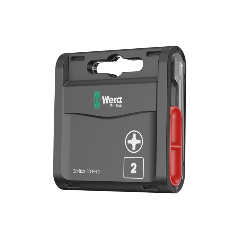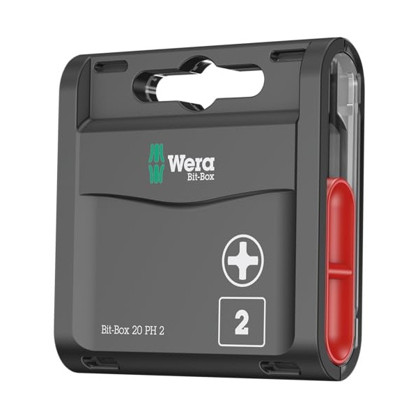 Wera Bit-Box 20 H PH2 Extra Hard bits for drill/drivers, 25mm, 20pc pack, 05057750001 , Black