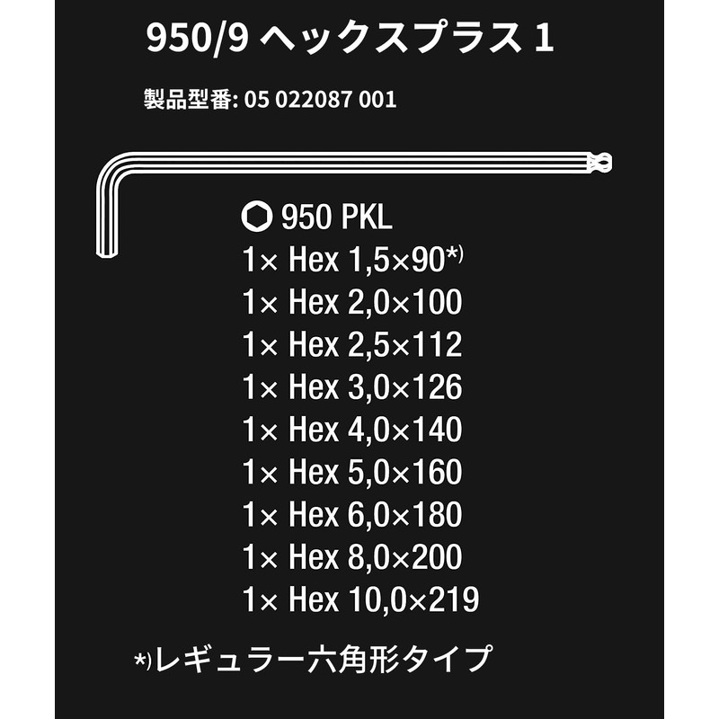 Wera Hex-Plus 950 PKL/9 SM N Chrome Plated 9-Piece Hex L-Key Tool Set