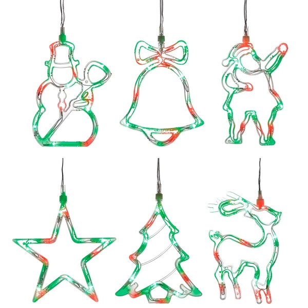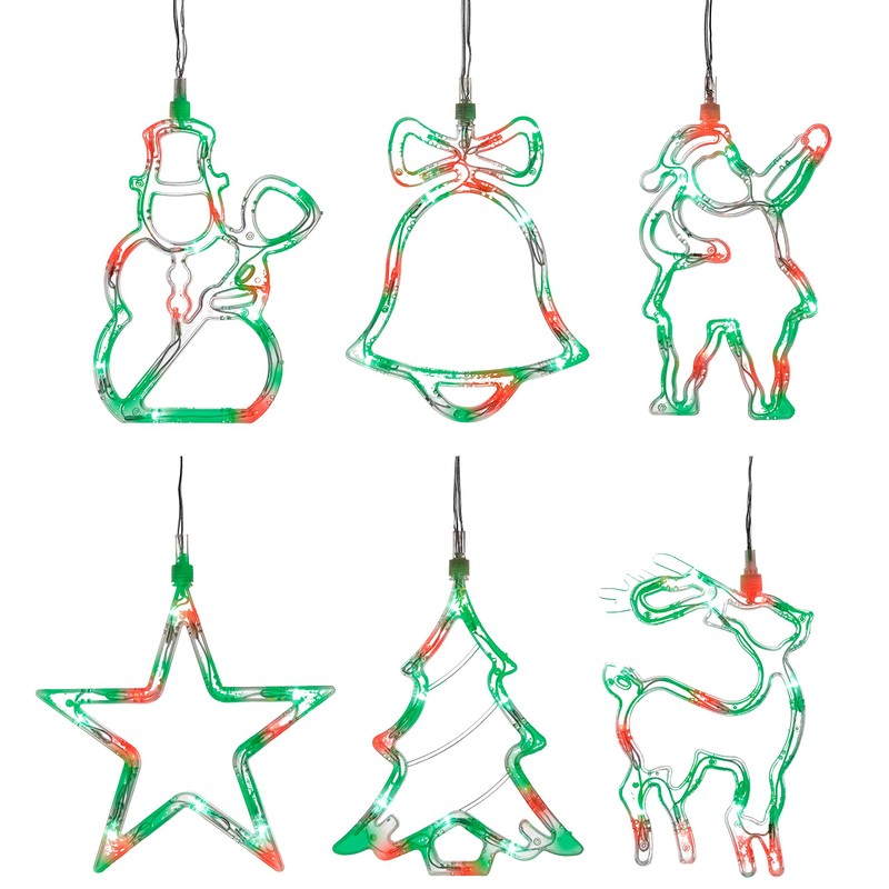 - These lovely vertical Christmas lights feature six different figures from top to bottom - star, bell, Santa, reindeer, tree and snowman