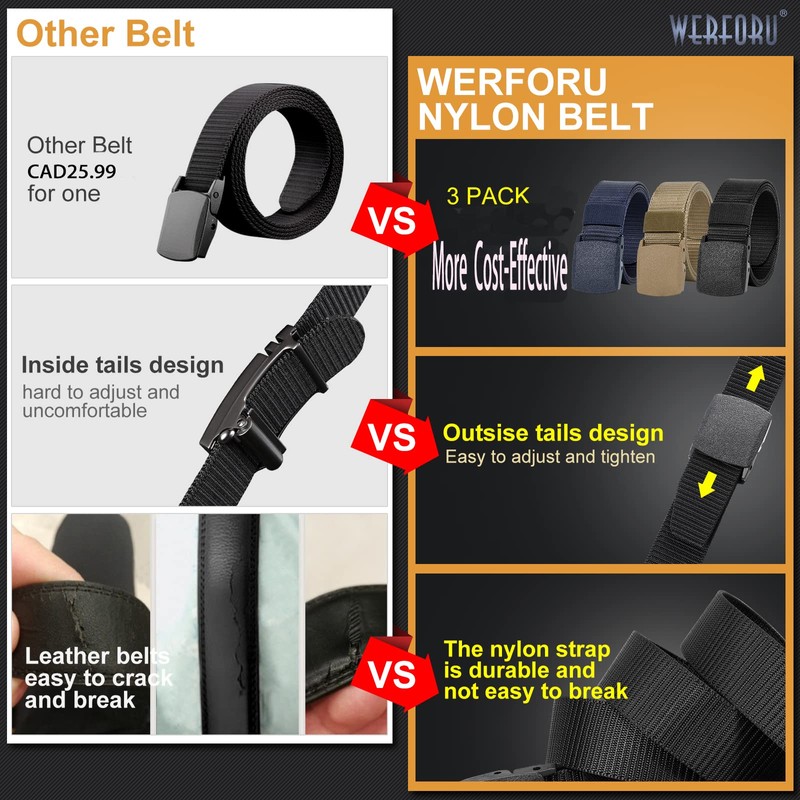 - VARIOUS COLLOCATION---We have 2 pack,3 pack,4 pack nylon belt for your choice.Different colors nylon belt meet your different daily wear needs. Lightweight, quick dry, comfort nylon material strap with plastic buckle suitable for daily wearing with all pants, and outdoor heavy duty work or sports (hiking pants, ski pants, snow pants etc). A great gift for your friend and relatives!