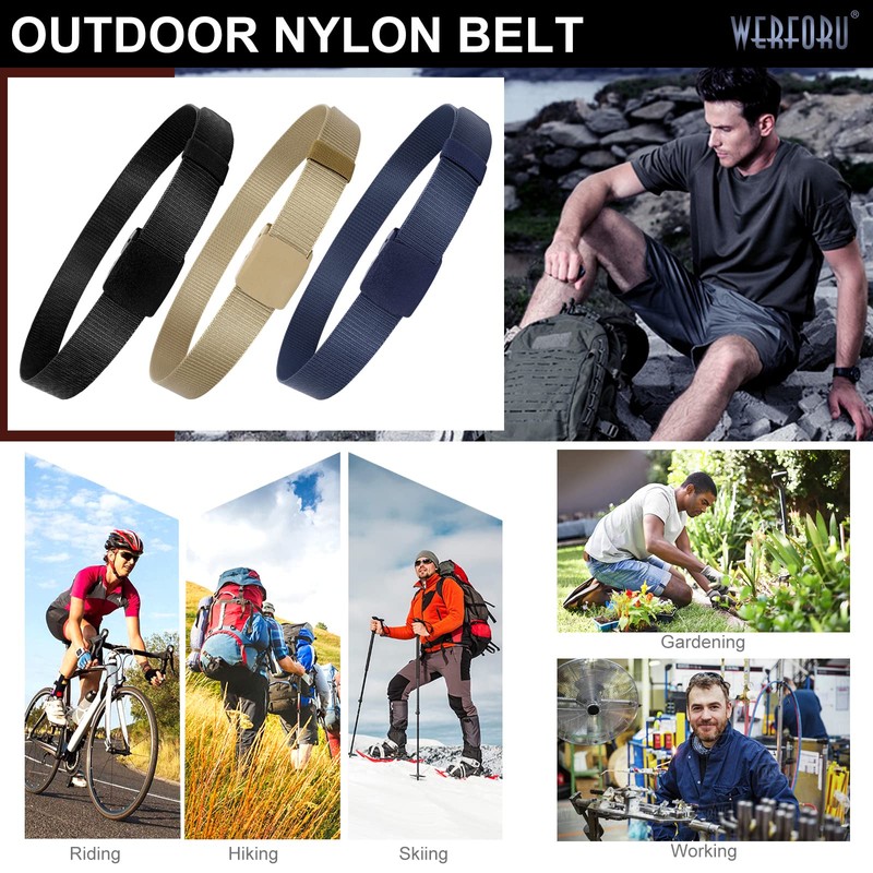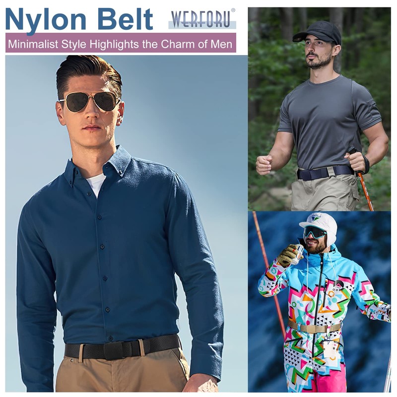 - OCCASION---Available in black,khaki,blue,gray ,coffee 5 colors for choose,enough quantity and color to match all your daily outfit. This nylon belt is not only for daily wear, but also more suitable to outdoor sports, such as: climbing mountains, hiking, golf, hunting, fishing ,skiing and so on.