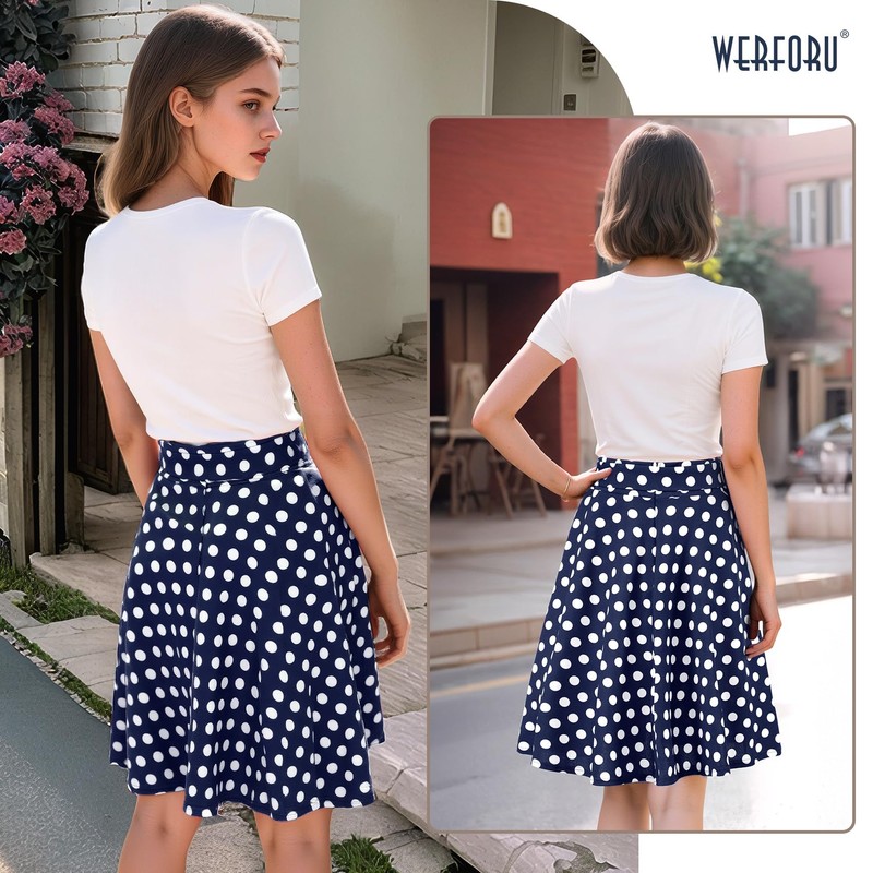 WERFORU Women's Midi Skirt, Summer Skirt, Costume Skirt, Women's 50s Skirt, Polka Dot Rockabilly Dresses, blue, M