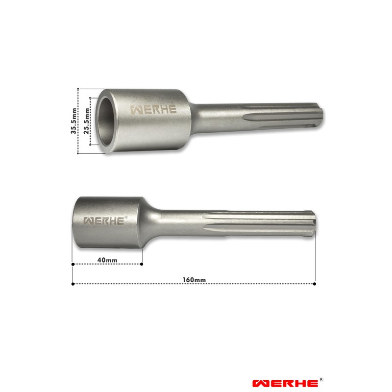 WERHE® 25.5 x 35.5 x 160 mm Professional Ground Nail Driver for Inserting deep Earth Earth rods - Jack Hammer Picket Post Driver Driver SDS Max