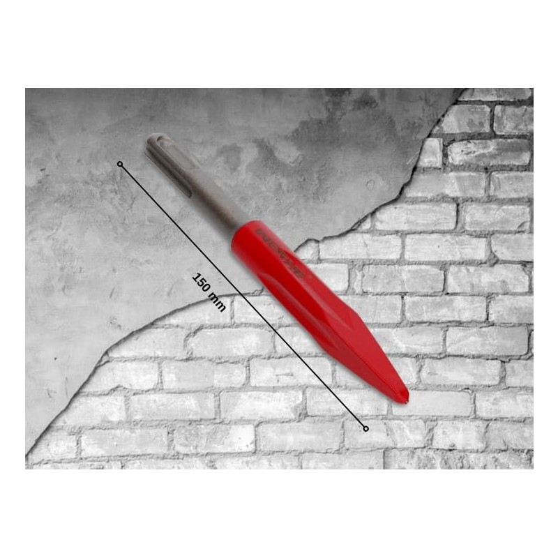 • Details – wide chisel 14 mm, SDS plus shank (10 mm), total length 150 mm, weight with packaging: 0.100 kg, made of high-quality steel. Box contents: pointed chisel, packaging