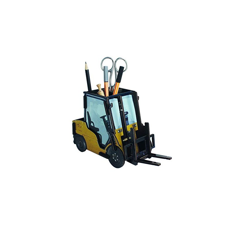- The wooden pen box for crafts in an extraordinary design is an eye-catcher in the children's room, on the desk or in the office. With the construction vehicle pen cup, children also have fun cleaning up. The wheels and fork of the pen holder for children are not movable.