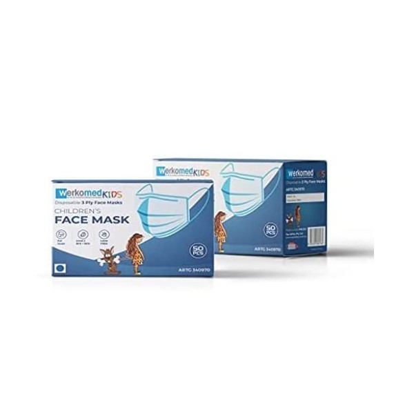 - Werkomed Kids Face Masks Level 2 50 Pack- Multiple Colours (Blue)