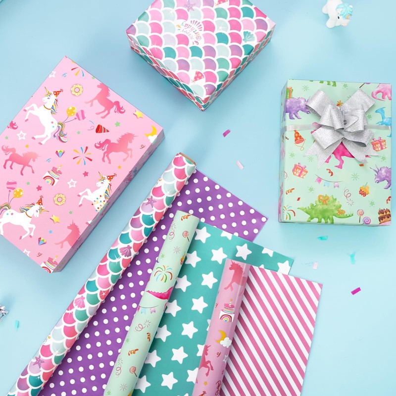 - VARIOUS STYLES - The three distinct patterns of wrapping paper featuring unicorns, mermaids, and dinosaurs are versatile for a range of occasions, be it a girl's birthday, a party, or a special celebration. These designs add a fun and personalized touch to your gifts.