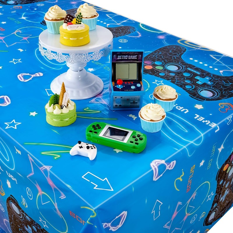 - TABLE CLOTH SIZE AND MATERIAL - Decorate your video game party in style with a gaming disposable tablecloth. Dimensions: 54'' x 108'', made of thickened plastic, water and oil resistant. No bad smell, can prevent the table from getting dirty.