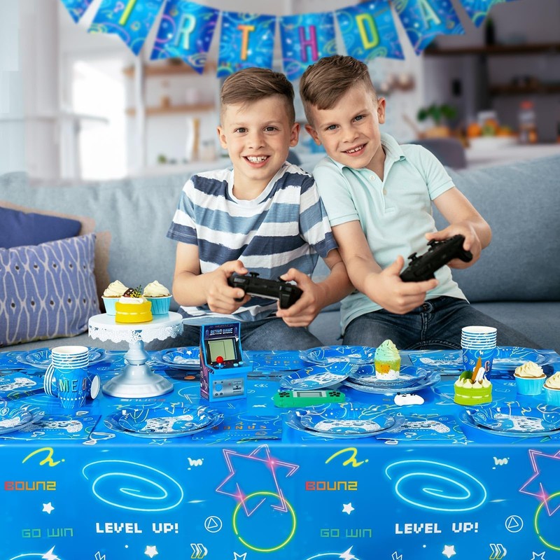 - Video game party decorations - Offers space for up to 8 adults or 12 children. The rectangular gamer tablecloth is not only suitable for video game parties, but also for boys gaming evenings, children's gamer birthday parties and geek game themed parties.
