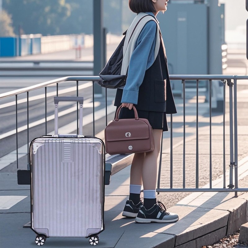 Werownsgso Transparent Suitcase Covers, PVC Suitcase Protective Cover, Transparent, Dustproof, Black Border, Luggage Cover, Anti-Dust, Anti-Scratch for Travel, Transparent (24 Zoll)