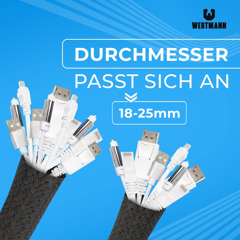 - Quick with cable salt: Do you always have cable tangle? Now is finally an end to this! Whether at home or in the office - the cable sleeve from Wertmann is your ideal cable management and protects the cables optimally from damage