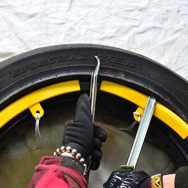- Slightly curved tip can easily separate and remove the tyre. Insert the curved head of the tyre lever between the tyres and the rim and pry the tyre around in a circle to lift off the entire tyre. Complete the separation of the tyre and rim.