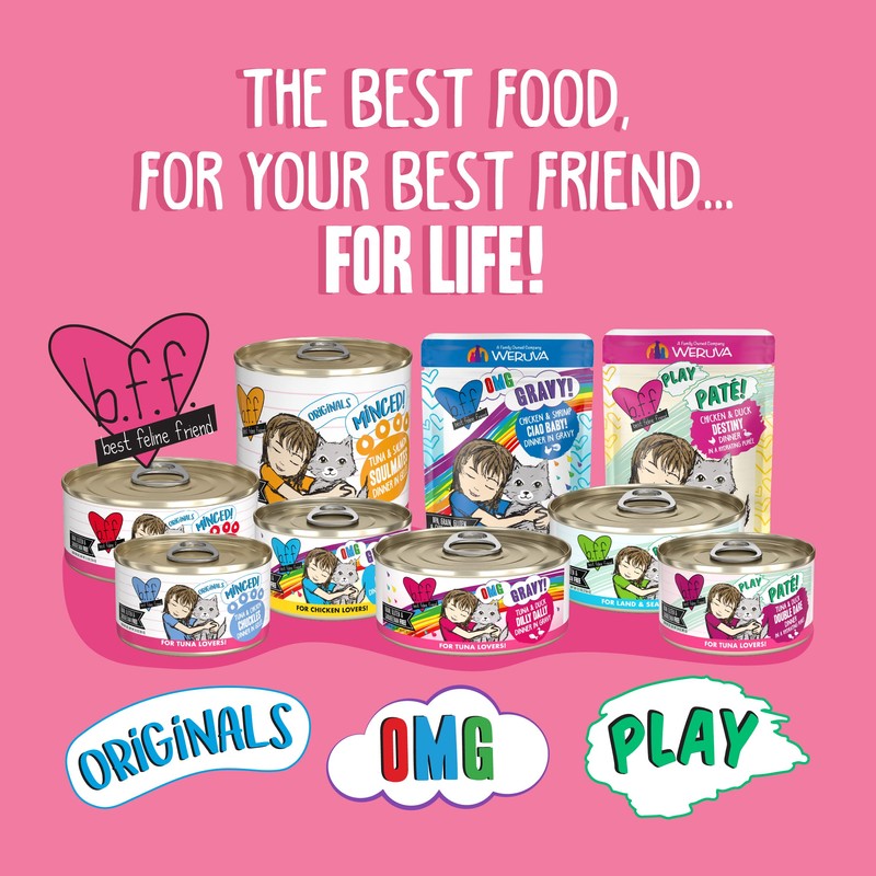 - B.F.F. OMG - Your Best Feline Friend will love these extra juicy flavors. Oh my Gravy!