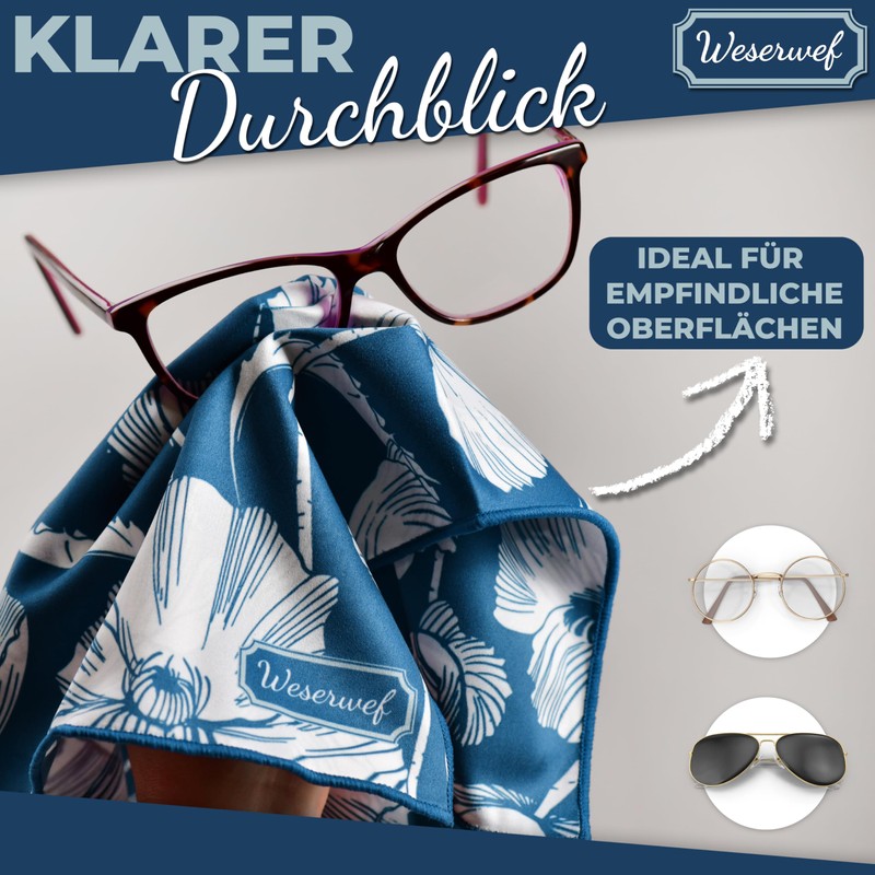 Glasses cleaning cloth: the Weserwef glasses wipes clean lenses particularly thoroughly and leave no annoying streaks. Perfect for those who value clean glasses and a clear view.