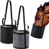 Wesnoy 2 Pcs Horse Feed Bags for Grain Mesh Grain Feeder Bucket with Adjustable Strap and Waterproof Bottom for Feeding Fodder Powder Supplements(Black and Gray)