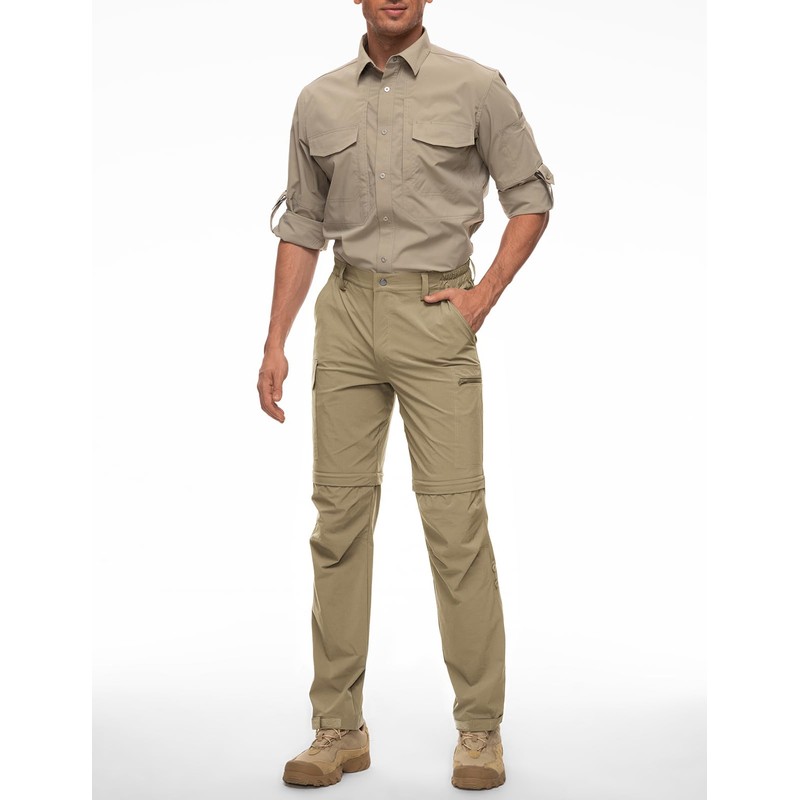 Wespornow Men's-Convertible-Hiking-Pants Quick Dry Lightweight Zip Off Breathable Cargo Pants for Outdoor, Fishing, Safari (Khaki, Small)
