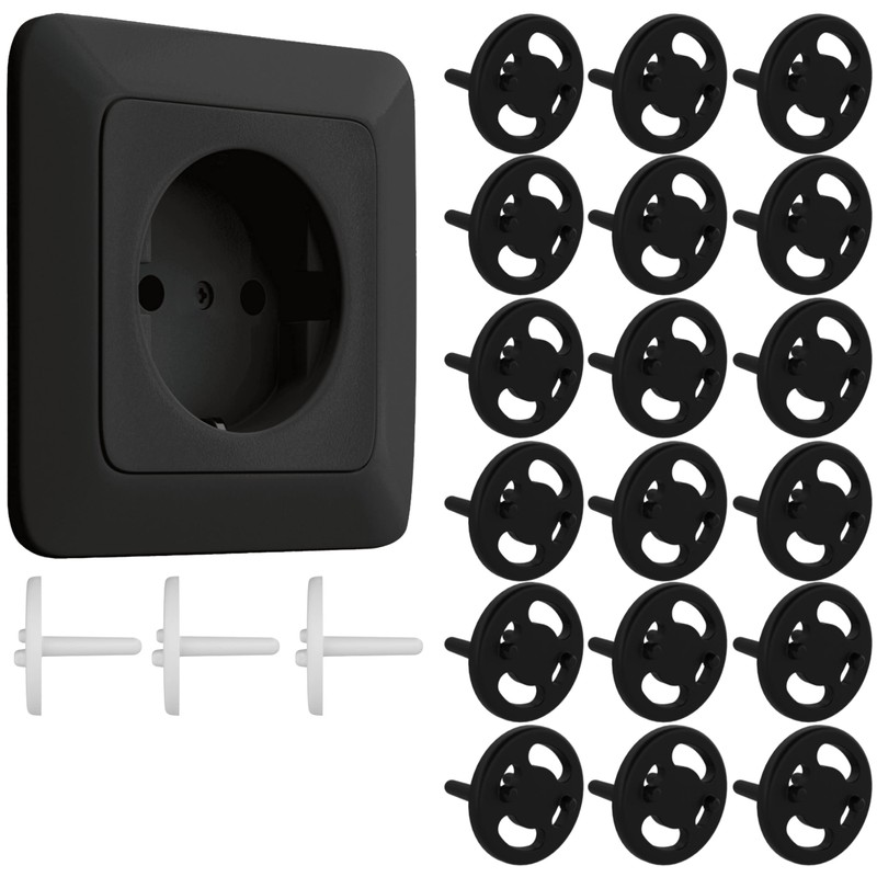 Wessper Pack of 21 Socket Protectors, Socket Cap, Child Lock with Twist Mechanism, for Baby and Children, Safety Protective Socket, Black
