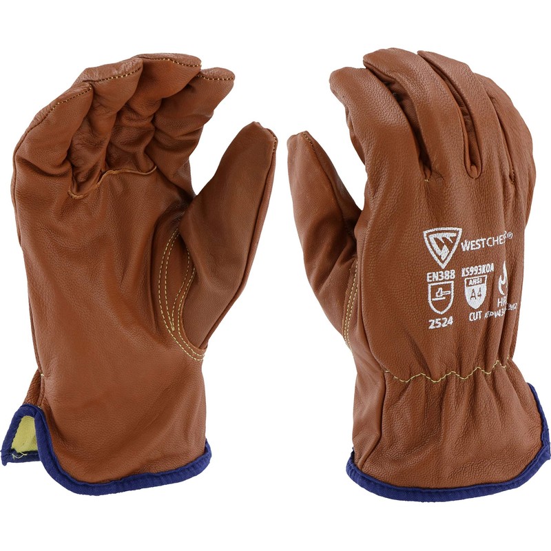 West Chester KS993KOA Goat Work Gloves – Brown, Large, 10.5 in., Arc Flash Leather Driver Gloves with Cut Resistant Lining, Oil Armor Finish
