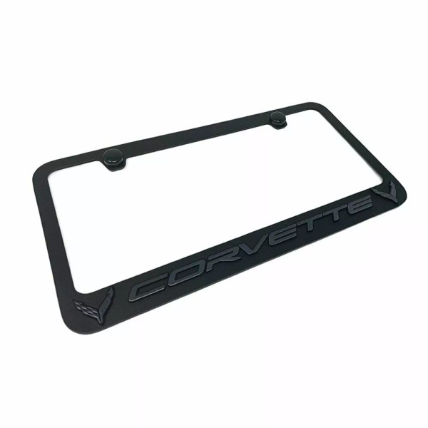 West Coast Corvette C8 Corvette License Plate Frame - Black with Black C8 Crossed Flags Logo