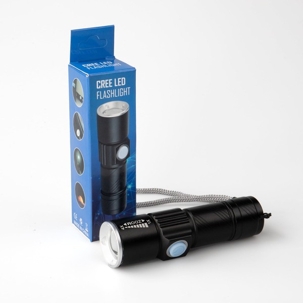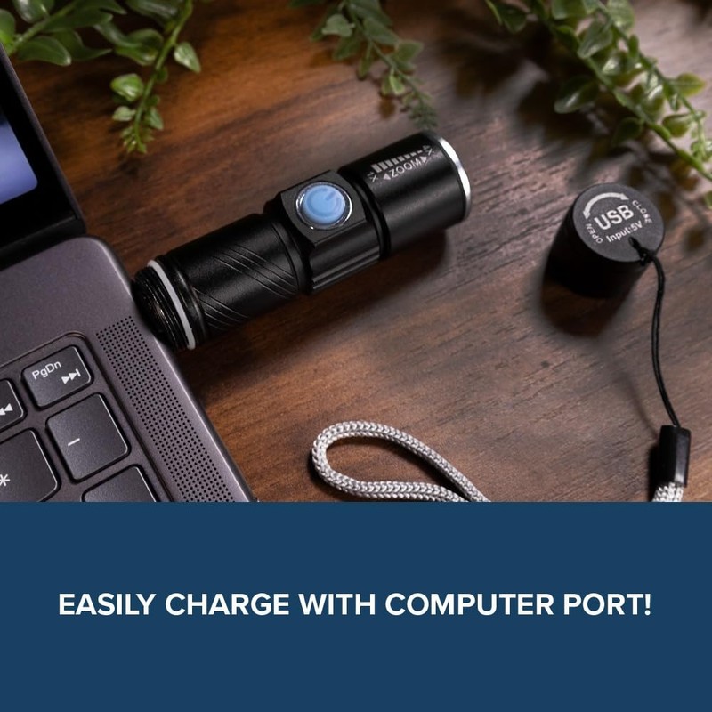 West Coast Paracord LED Flashlight, 3 Modes, Adjustable Zoom Focus, USB Rechargeable, Portable EDC Tactical Light, Bright 200 Lumens, Long Battery