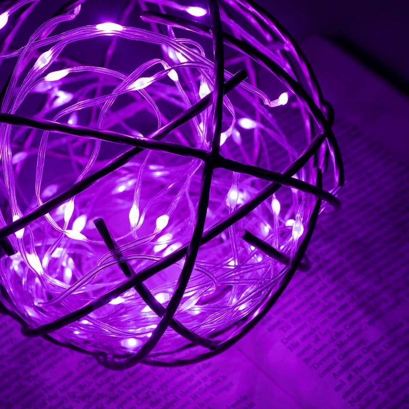 West Ivory Flexi LED Lights 33 feet 100 LEDs String Starry Ribbon Fairy Lights, 8 Modes w/6H Timer, Waterproof, Valentines, Christmas Xmas Tree, Holiday, Transparent Wire, Plug-in, Purple
