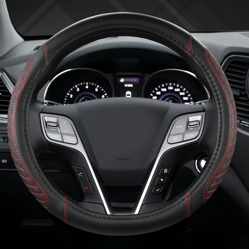 West Llama Customized Auto Car Steering Wheel Cover for Hyundai,Tucson,Sonata,Elantra,Santa Fe,Genesis,Sonata Hybrid,Azera,Venue,Kona, 14.5-15 inches(Diamond Quilted-Black+Red-Standard Size)