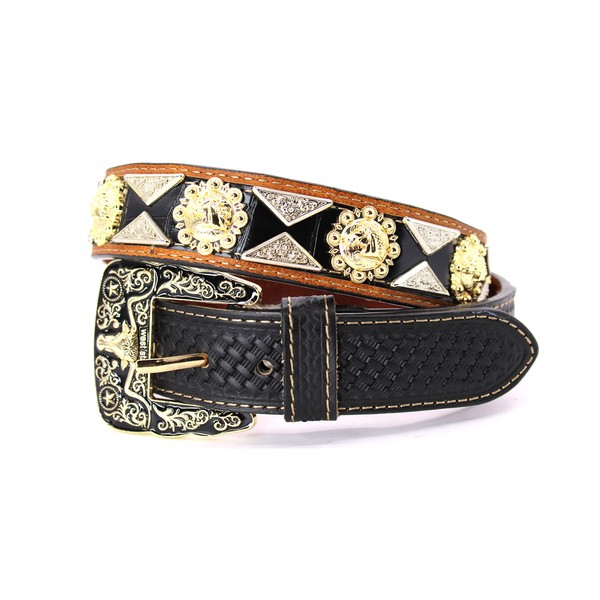 West Star Texas Western Leather Belt Gold Berry with Triangular Silver Concho Decoration 2601B HORSE BK WEAVE XXL
