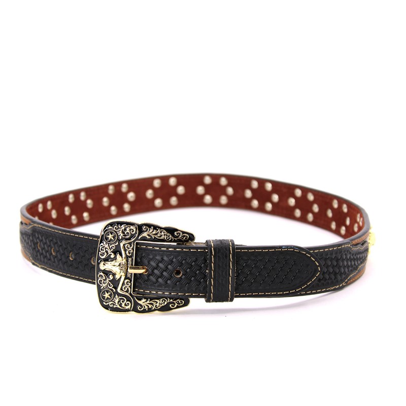 West Star Texas Western Leather Belt Gold Berry with Triangular Silver Concho Decoration 2601B HORSE BK WEAVE XXL