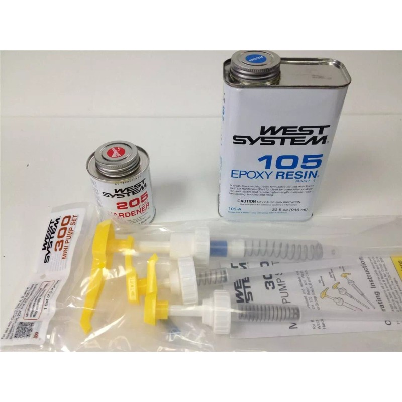 West System Epoxy Kit Qt 105A Resin, Pint 205A Fast Hardener, 300 pump Set
