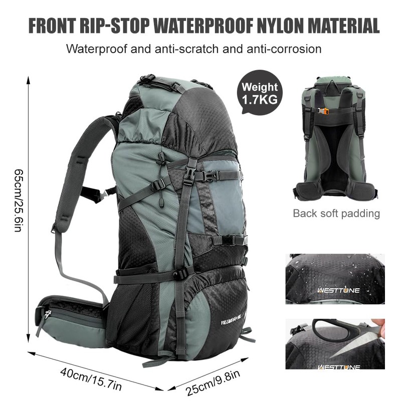 • Durable & Adventure-Ready: 60L Westtune backpack, adjustable fit for all, perfect for both novices and experienced adventurers.