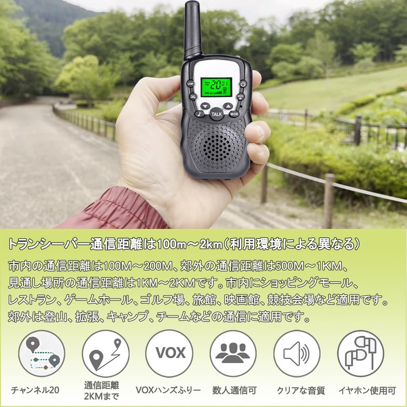 • SET OF 3 TRANSCIENTS: This particular small power transceiver has VOX hands-free function, you can directly call without pressing any tricky call when you are busy or living or busy with inconvenience; The walkie talkie can also be set a key lock and you don't have to worry about accidentally pressing keys in your pocket