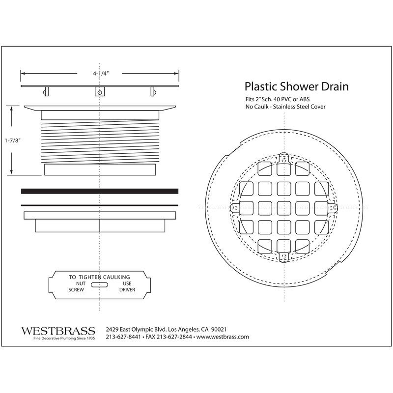 - Sch. 40 PVC body shower drain, fits both 2 in. ABS and PVC pipes (2 in Sch. 40 doesn't measure 2 in actual size. Please research prior ordering) Metal drain cover included