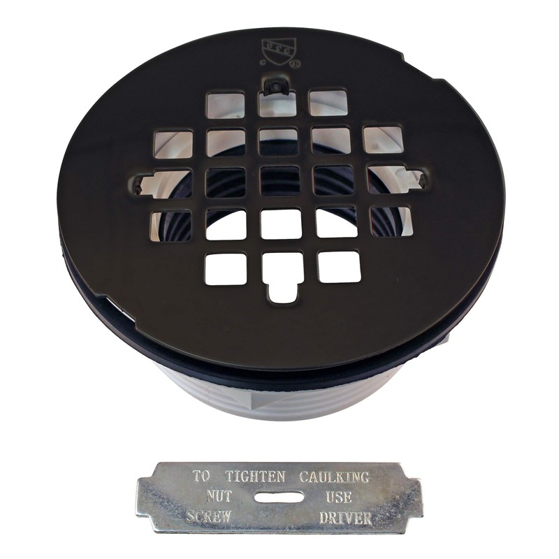 Westbrass A206P-12 2" No-Caulk PVC Compression Shower Drain with 4-1/4" Round Grid Cover, 1-Pack, Oil Rubbed Bronze