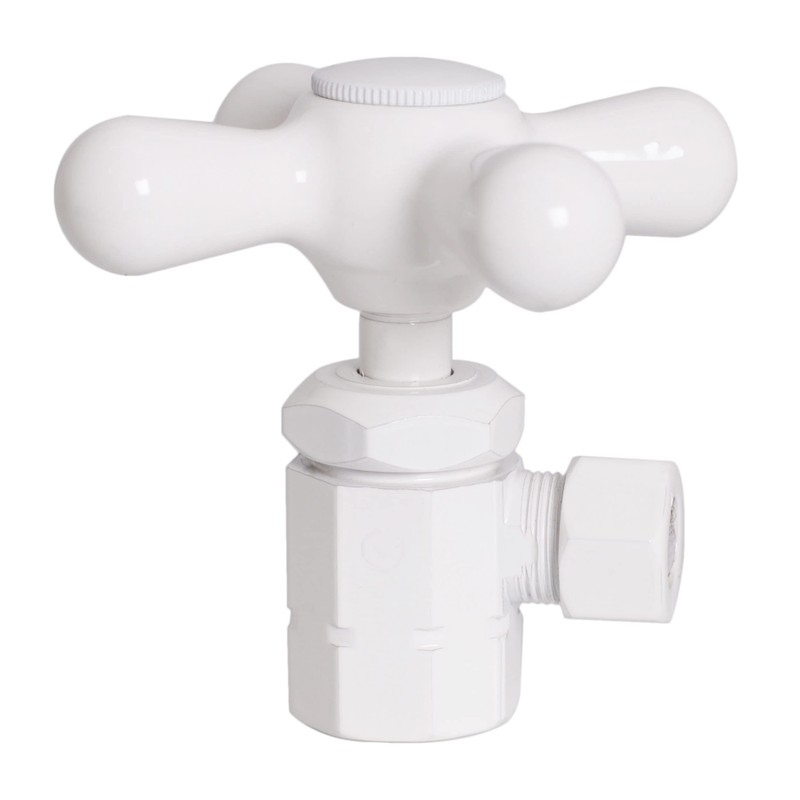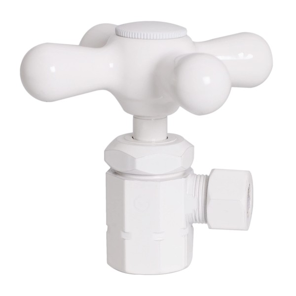 Westbrass D103X-50, 1/2" IPS Inlet with 3/8" Compression Outlet Cross Handle Angle Stop Shut Off Valve, Powder Coat White