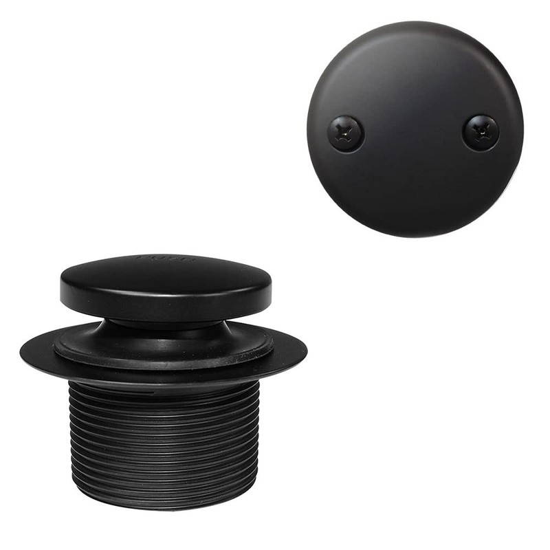Westbrass D93-2-62 1-1/2" Tip-Toe Bathtub Drain Plug Trim Set with Two-Hole Overflow Faceplate, Matte Black, 1 Count (Pack of 1)