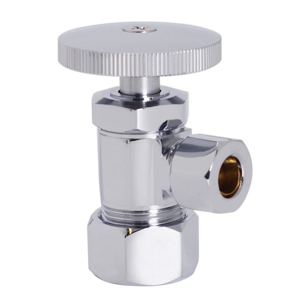 Westbrass Shut Off Valve Round Handle Angle Stop 1/2-inch Copper Pipe Inlet with 3/8-inch Compression Outlet D105-26, Polished Chrome