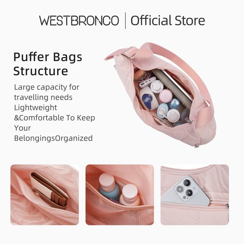 WESTBRONCO[Mother's Day]Puffer Tote Crescent Shoulder Bag Quilted Hobo Women Purse Bags Nylon Handbag Adjustable Strap Sling Bag Gril Gift Springtok:_Black