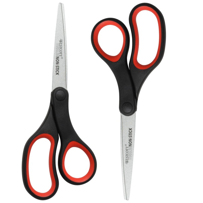 Westcott 8" Titanium-Bonded Non-Stick Scissors, 2-Pack, Black and Red