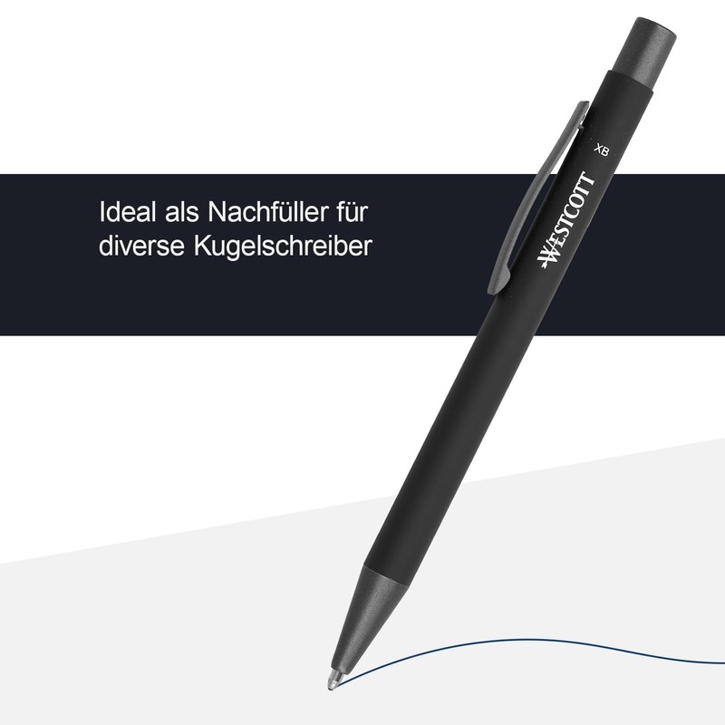 Westcott Ballpoint Pen Refills Black Pack of 10 | G2 Ballpoint Pen Refills XB 1.4 mm in Pack of 10 | Compatible with ISO Standard G2 | Indelible Blue Ink | E-733493 00