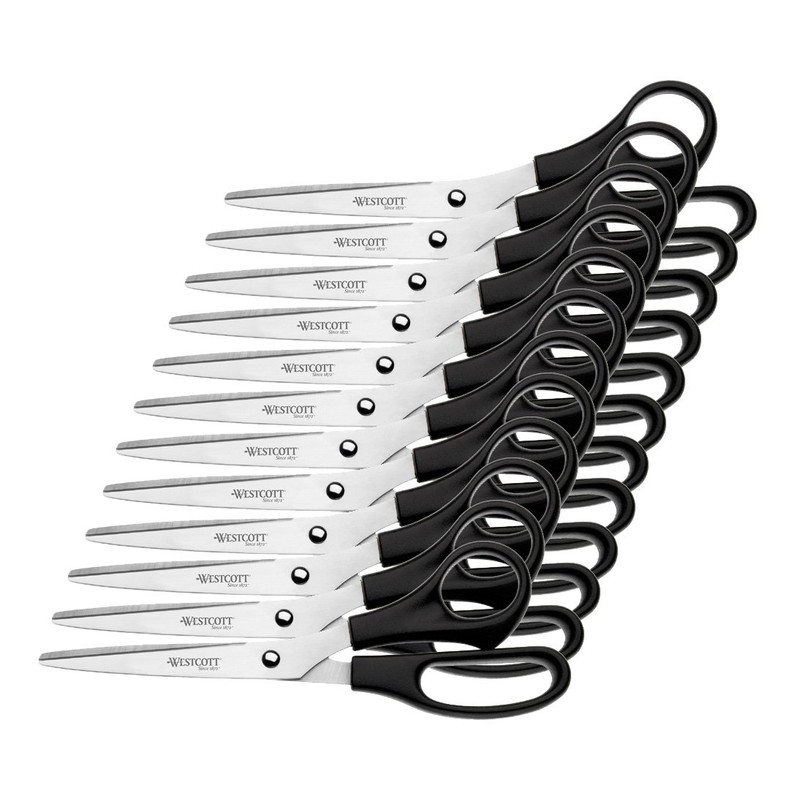 Westcott E-31181 00 Office Scissors 21 cm Stainless Steel Blades Black Plastic Handle Pack of 12