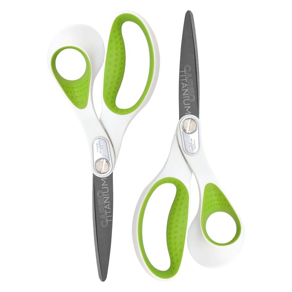 Westcott 16926 8-Inch Heavy-Duty CarboTitanium Scissors for Office and Home, Green/White, 2 Pack