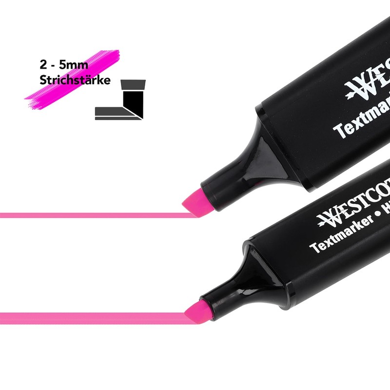 Westcott Highlighter Pens Pack of 10 Pink | Pack of 10 Highlighter Markers in Bright Pink | 2-5 mm Line Width | Premium Ink from Germany | E-743617 00