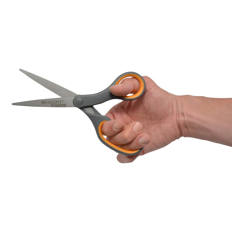 The high performance patented Titanium Bonded blades provides three times the strength of classic stainless steel blades and they stay sharp and effective even after long use. The redesigned ergonomic handle provides maximum comfort during use. This will be the last scissor you will ever need.The corrosion-resistant blades resist tape and glue, which means the cutting edge stays sharper longer.