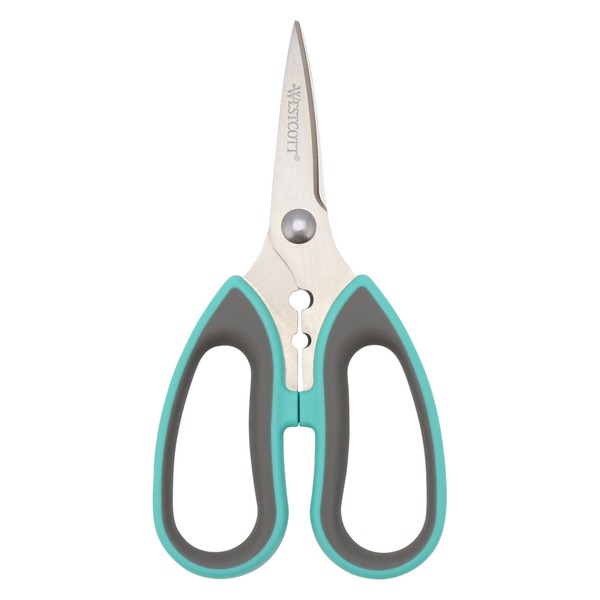 Westcott Titanium-Bonded Soft Handle Kitchen Shears for Herbs, Teal - 6.5-Inch Versatile Kitchen Shears with Precision Cutting Tips and Built-In Herb stripper for Easy Handling and Comfort