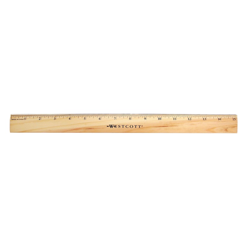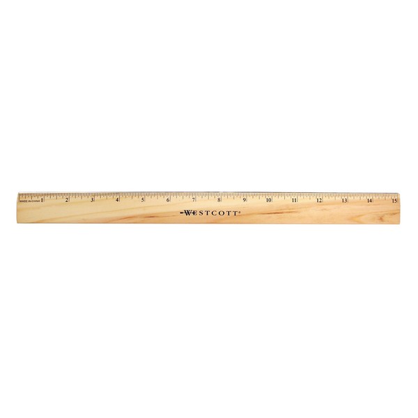 Westcott Wood Ruler with Single Metal Edge, 15"