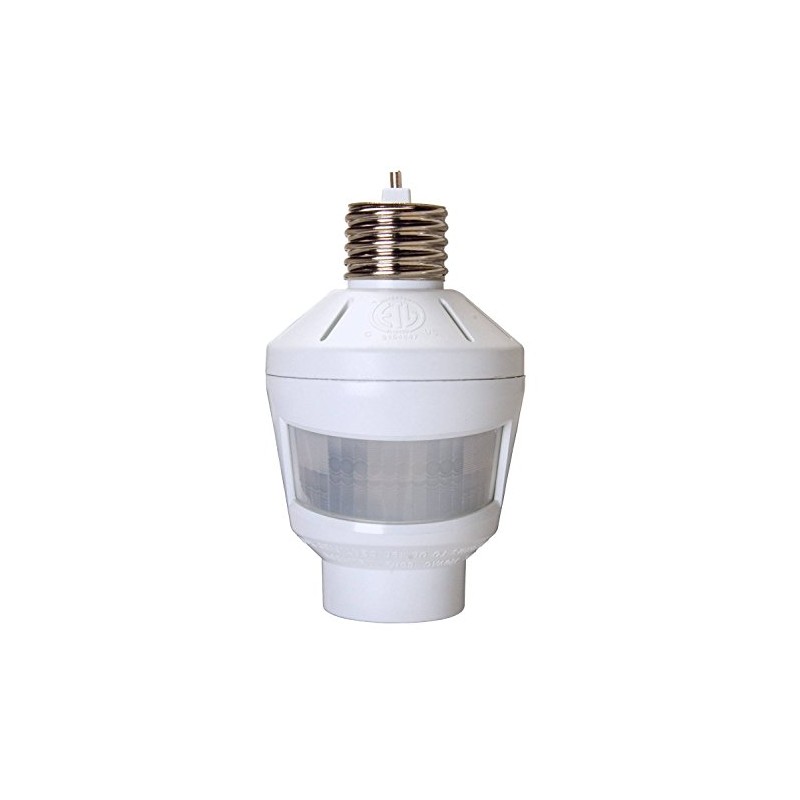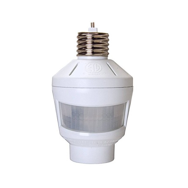 Due to continuing product development, the product you receive may look slightly different than the one displayed. This light control automatically turns a light on when motion is detected in the room and off 10 minutes after you leave. Senses activity at distances up to 30 feet away when mounted 8 feet from floor, with a detection zone up to 120°. It is perfect for laundry room, garage, basement or attic because it eliminates the need to fumble in the dark for a switch or pull-string. Caution: This motion sensor is not designed for use with an enclosed or shaded fixture of any kind. Infrared cannot penetrate glass or plastic. Use only with a ceiling mounted, bare bulb light socket. Works with any compact fluorescent or incandescent bulbs, 75 Watts Max. Do not use with halogen bulbs.