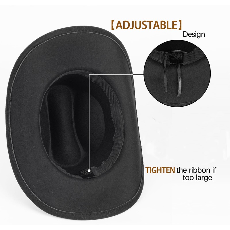 - Size: The western cowboy hat circumference: 22.4"-22.8",Brim Width:3.03",Hat Height:4.33",fit most women men head(Small to Medium size).you can follow the tips inside to adjustable ribbon strip when you feel large according to your head size.curved brim and tapered in the front for a modern look on a classic style