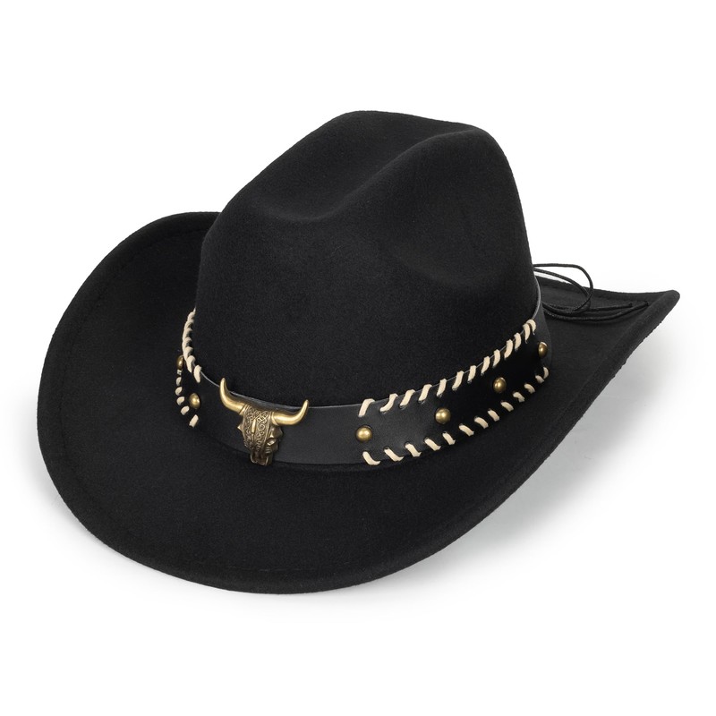 Band Style: Vegan leather strap decoration, with studs the band. Classic western cowboy hat style, rolled brim.