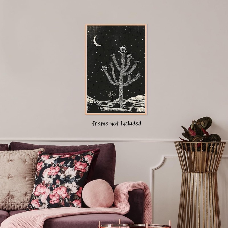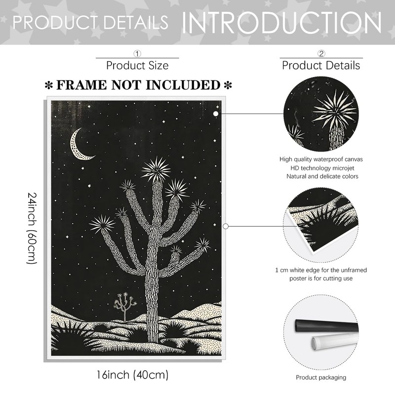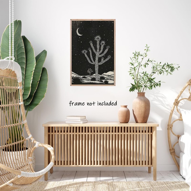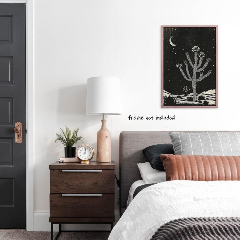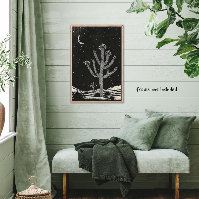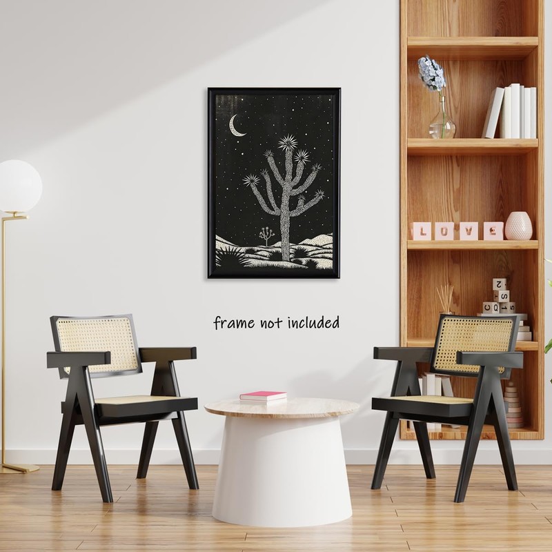 Western Desert Landscape Wall Art Prints Joshua Tree Block Poster,Boho Southwestern Wall Decor Minimalist Black and White Wall Art, Eclectic home decor 16X24in Unframed