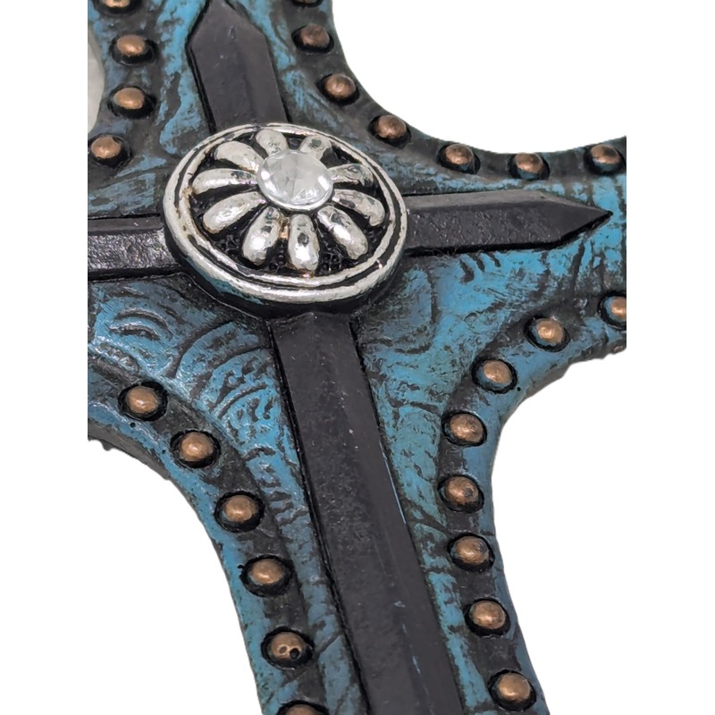 Western Elegance Turquoise Wall Cross – 7.5" Decorative Resin Cross with Studs – Christian Church-inspired Home Décor